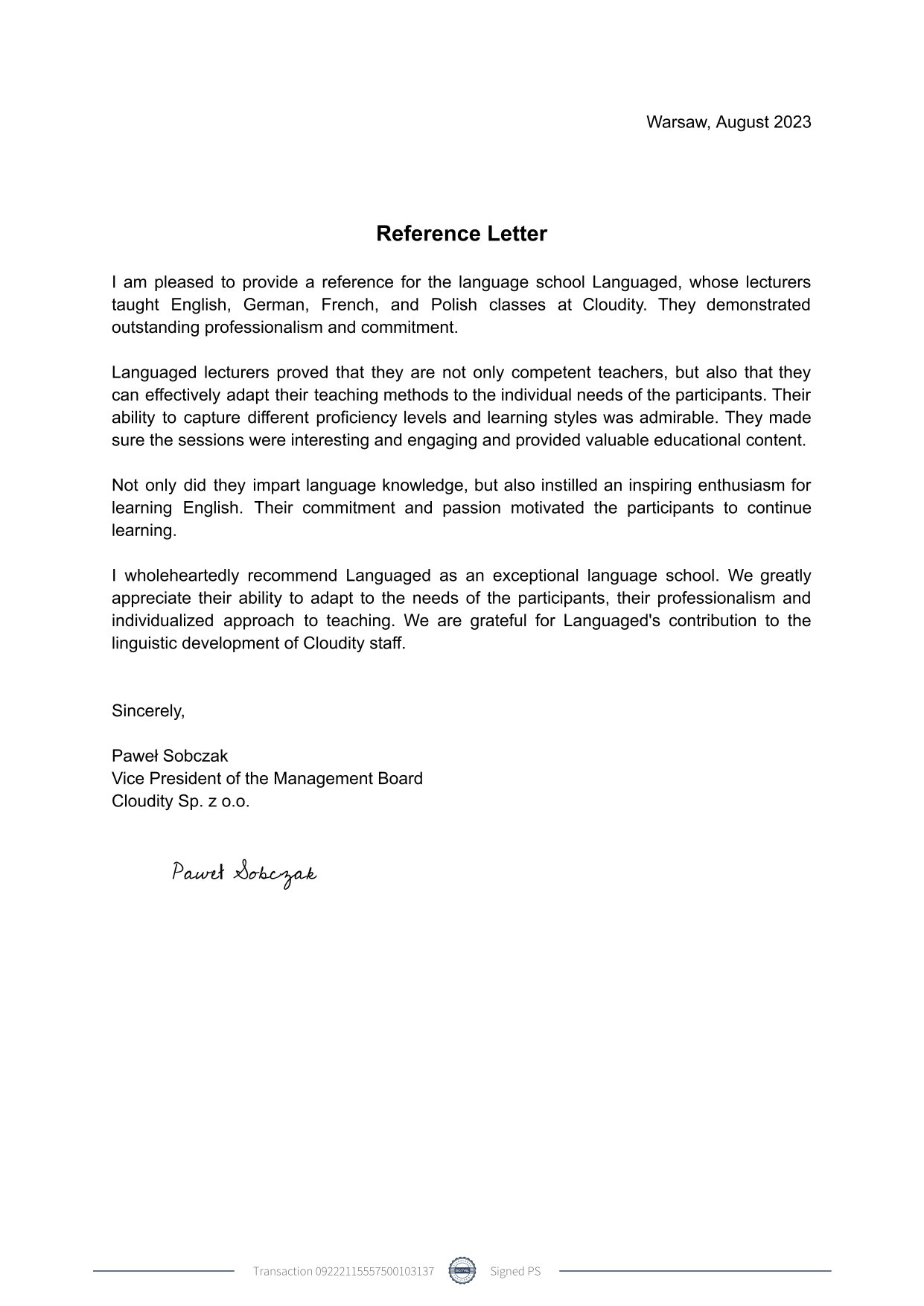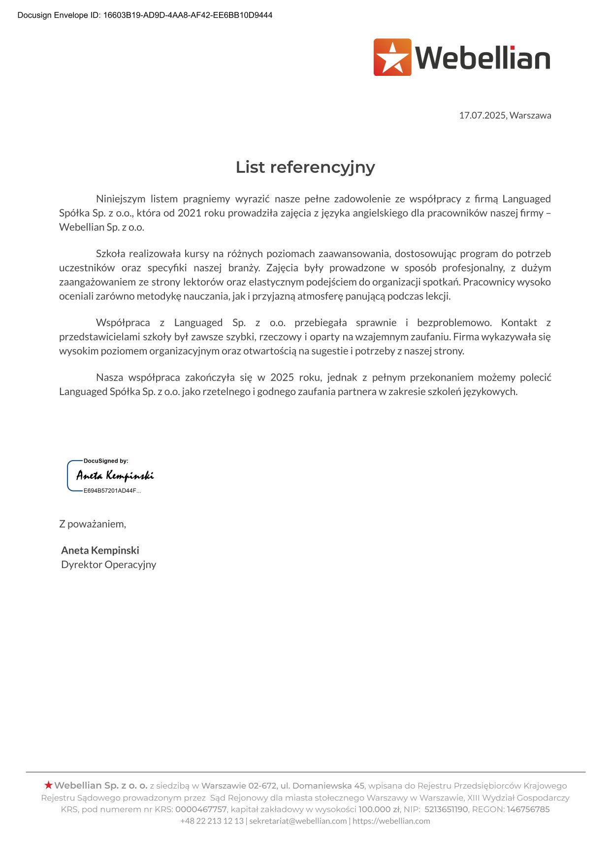 Write to biuro@languaged.pl or call 790 300 401 / 790 400 201.