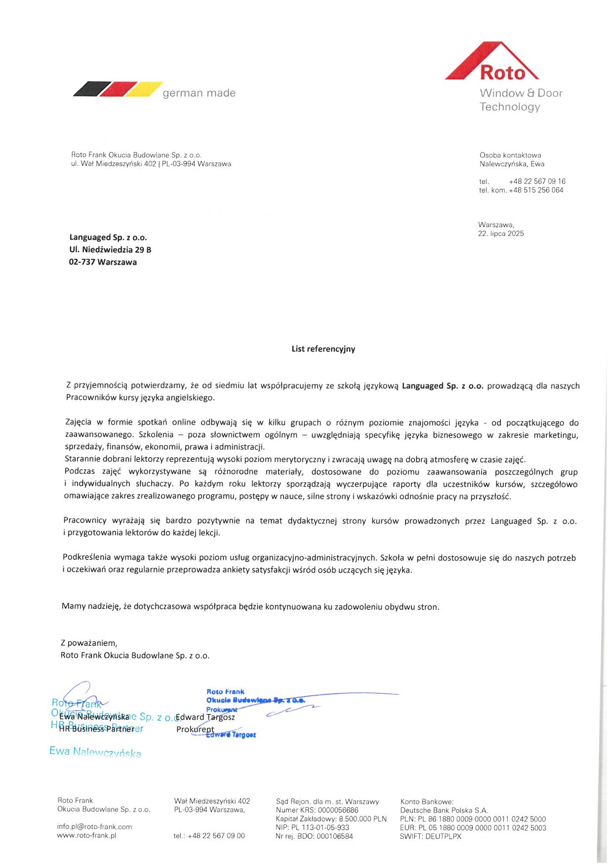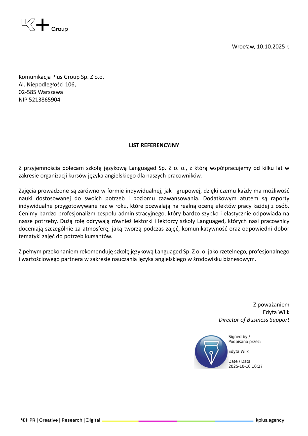 Na bieżąco zbieramy feedback od naszych kursantów, partnerów biznesowych oraz lektorów, aby upewnić się, że kursy spełniają nasze standardy. Wykorzystujemy do tego nowoczesne narzędzia i dbamy o regularną oraz otwartą komunikację ze wszystkimi stronami. Firmy doceniają, że szkolenia językowe dla firm są u nas przejrzyste i mierzalne.